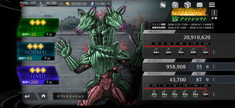 最大ダメージはともかく、累計ポイントが相変わらず危うい所です。